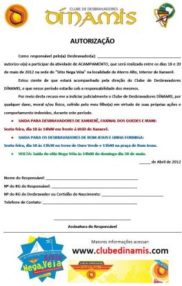 O primeiro deles, a Autorização, você deve imprimir e trazer preenchida e assinada para poder embarcar no ônibus de conservação duvidosa. Lembre-se: sem autorização, sem diversão!