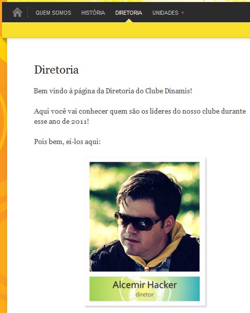 Ou seja, basta você clicar ali em cima, pra conhecer todo mundo que faz parte do Clube Dínamis! Os mais experientes você encontra na seção da Diretoria.