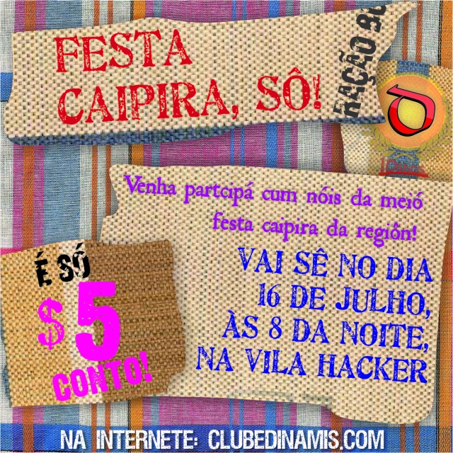Entôn, coloca o seu cirolôn, umas duas trêis meia pra non aparecê o furo da de baxo, passa uma cera no bigodôn, calça os butinôn, dexa as vaquinha bem tratada, e vem pra festa do Dinamôn!!!