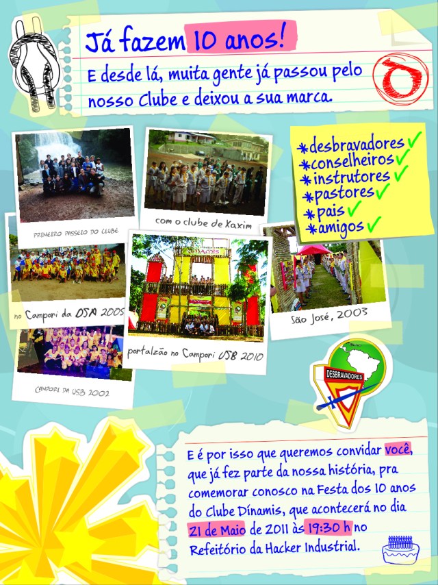 Não dá pra mencionar tudo o que aconteceu na festa, tampouco dá pra mencionar tudo o que aconteceu durante esses maravilhosos 10 anos de Clube Dínamis. Tem coisas que precisam de muitas páginas pra descrever, tem sentimentos que é impossível traduzir em palavras. No fim das contas, só o que resta é a alegria de ser parte dessa história, que já dura 10 anos, e que vai continuar até Jesus voltar!