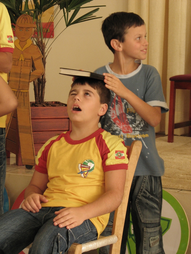 Bom, caretas à parte, preciso parabenizar de maneira especial à Gabriela e o Eduardo, que participaram do Sermão, junto com o diretor Alcemir (a propósito, estes mesmos Gabriela e Eduardo tiveram as melhores pontuações do clube na primeira etapa do Bom de Bíblia – mas essa é outra história), à Heloiza que contou a historinha pras crianças, à Maiara e a Tainara que apresentaram a Escola Sabatina, à Marina e a Isabela que apresentaram uma mensagem musical, à….. tá vendo como o nosso clube é cheio de gente especial?!?
